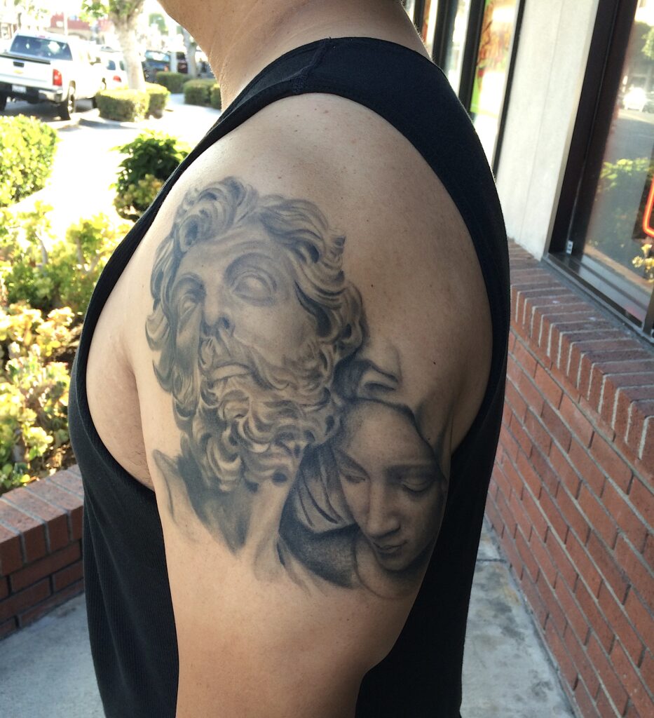 Biblical figures’ tattoo on upper arm