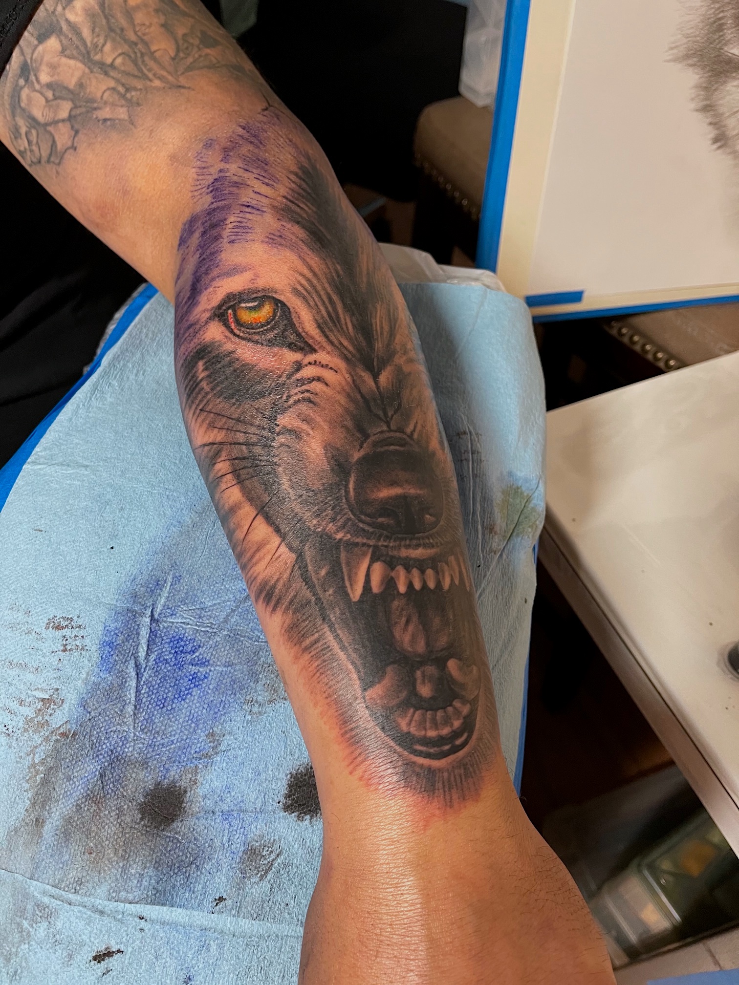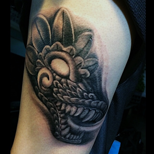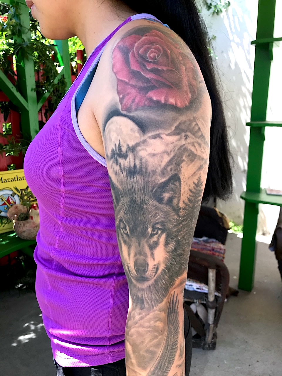 Skull and Music ‘tattoo sleeve’ black and grey flowing