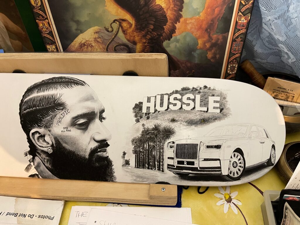 Nipsey Hussle’ art on a skate deck